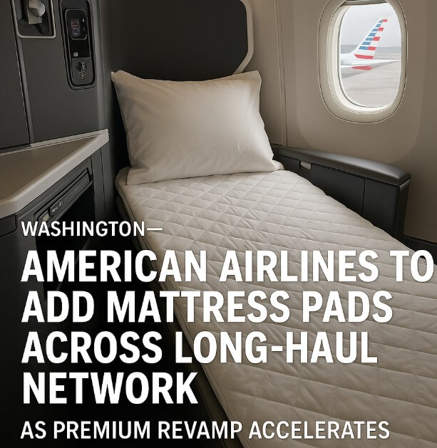 WASHINGTON— American Airlines is launching mattress pads across its entire long-haul network, signaling a renewed push to elevate its international business-class experience as competition intensifies among U.S. carriers. The enhancement expands a feature previously limited to select transpacific and South Pacific routes and marks a significant step in the airline’s broader premium-focused strategy.