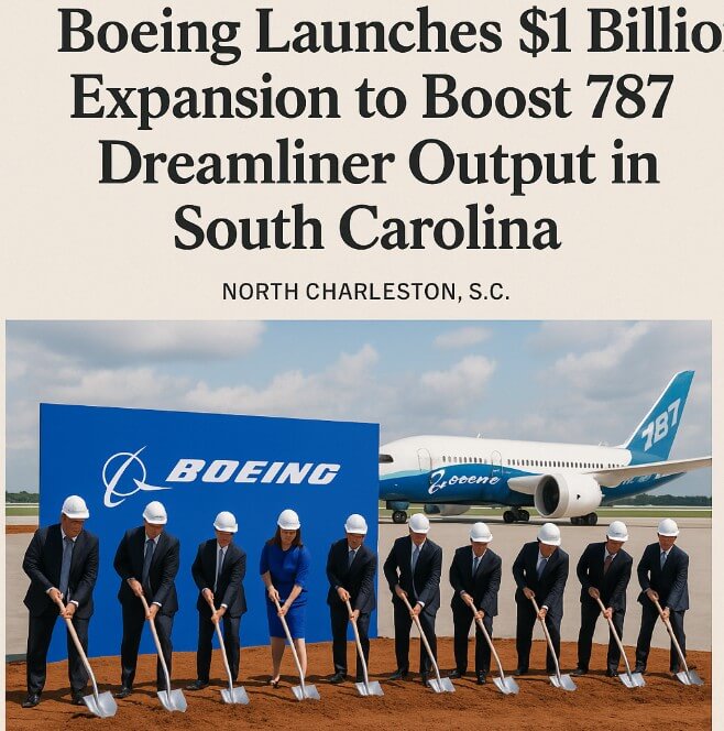 NORTH CHARLESTON, S.C. — Boeing is deepening its commitment to American aerospace manufacturing with a $1 billion expansion of its 787 Dreamliner production facilities in South Carolina, aiming to meet surging global demand for the fuel-efficient widebody jet.
