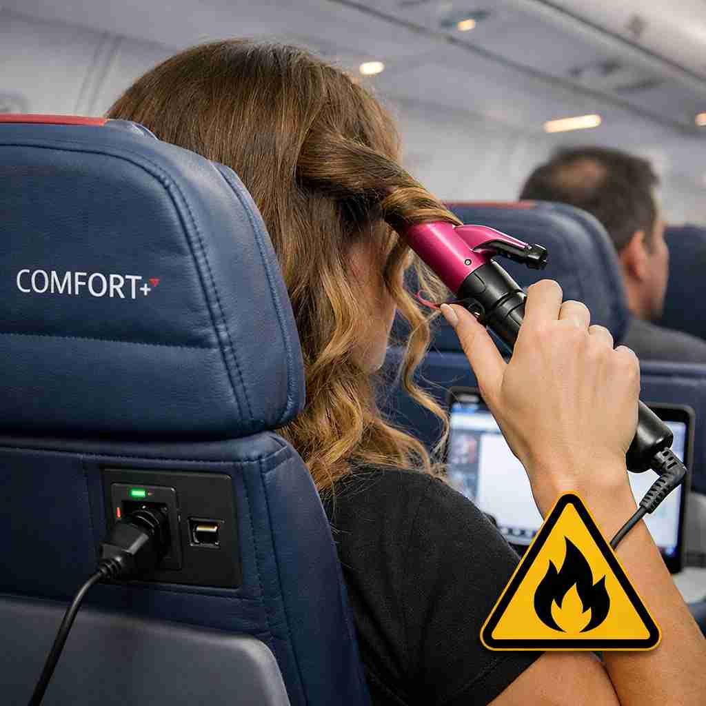ATLANTA — A video showing a Delta Air Lines passenger using a plug-in curling iron during a flight has reignited debate over what personal devices travelers are permitted to use once airborne. The incident occurred in the Comfort+ cabin on a Delta flight, where most mainline aircraft are equipped with in-seat AC power outlets intended for charging small electronic devices.
