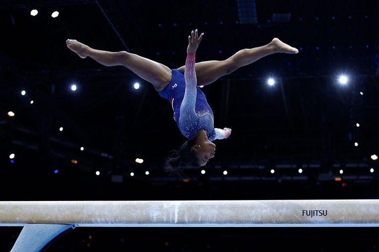 Life had pulled her down many times, but gravity had not. She’s flirting with it, like she always has. Perhaps better than ever, Simone Biles flies and twirls through the air at the World Gymnastics Championships in Antwerp. Seeing that scene, what spectator still thinks of the forced pause behind her, introduced for the sake of pure self-preservation?