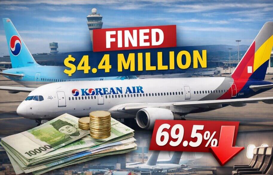 South Korea’s competition authority has fined Korean Air and Asiana Airlines a combined 6.46 billion won, or roughly $4.4 million, after determining that the carriers violated legally binding conditions tied to their ongoing merger by failing to maintain required seat capacity on a major international route.