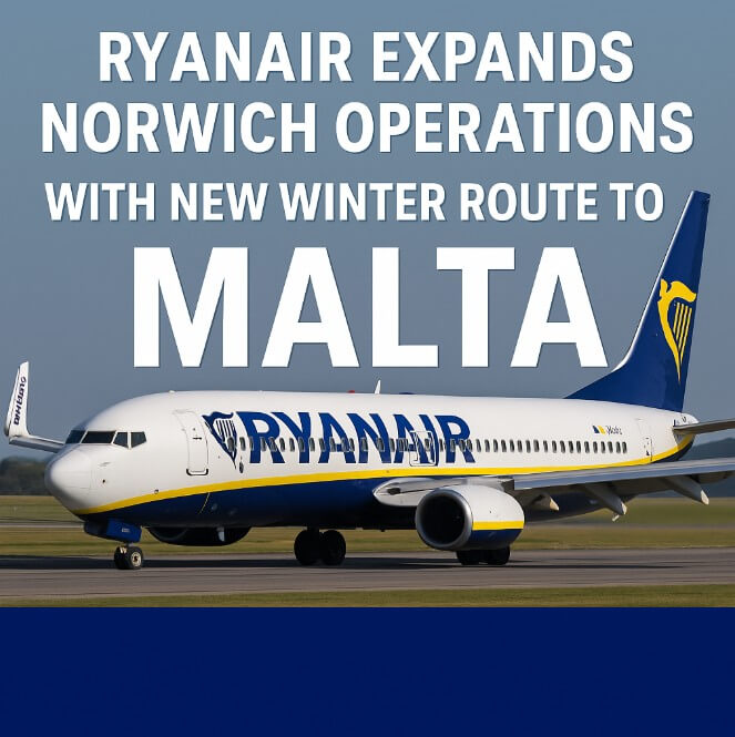 Ryanair is adding more options for travelers in East Anglia, unveiling its Norwich Winter 2025 schedule with the launch of a new route to Malta. The move marks the latest step in the airline’s growing investment in the region, offering competitive fares and strengthening connectivity for leisure and business passengers alike.