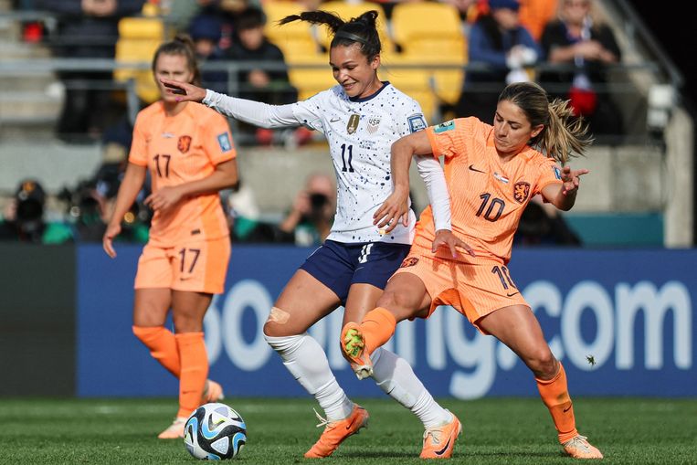 However, the early lead for the Netherlands, who last beat the United States in 1996, was little more than a nice push. Then the Americans put full pressure on them. Immediately after the score was 1-0, Van Domselaer tipped a long-range shot from Trinity Rodman – daughter of basketball legend Dennis – wide and then the USA team also became dangerous twice from two corners. Stephanie van der Gragt was injured in one of those corners. The defender, who was working on her final World Cup campaign, appeared to get into so much trouble at half-time that she had to be replaced by Annick Nouwen.