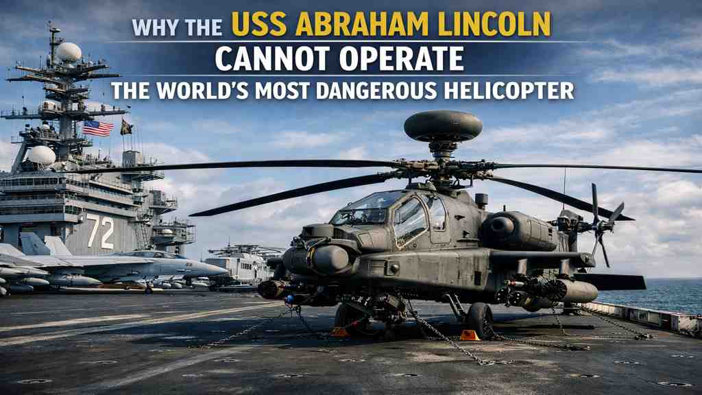 WASHINGTON— The USS Abraham Lincoln, one of the U.S. Navy’s most powerful nuclear-powered aircraft carriers, can deploy nearly 90 fixed-wing and rotary-wing aircraft when operating at full surge capacity. The carrier routinely launches and recovers some of the most advanced aircraft in the world, sustaining high-tempo combat operations across global theaters. Yet one aircraft is notably absent from its flight deck: the AH-64 Apache attack helicopter, a platform widely regarded as one of the most lethal rotary-wing combat systems ever built.